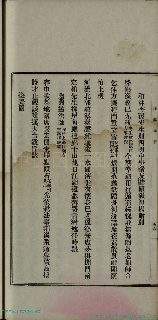 詩詞 [和林杏蓀先生別四明中學諸友詩原韻卽以贈別(二首)]