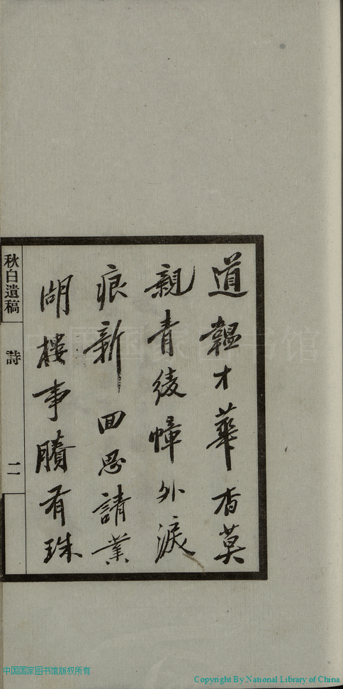 | 原書: 秋白遺稿:二卷(清孫景謝撰) |