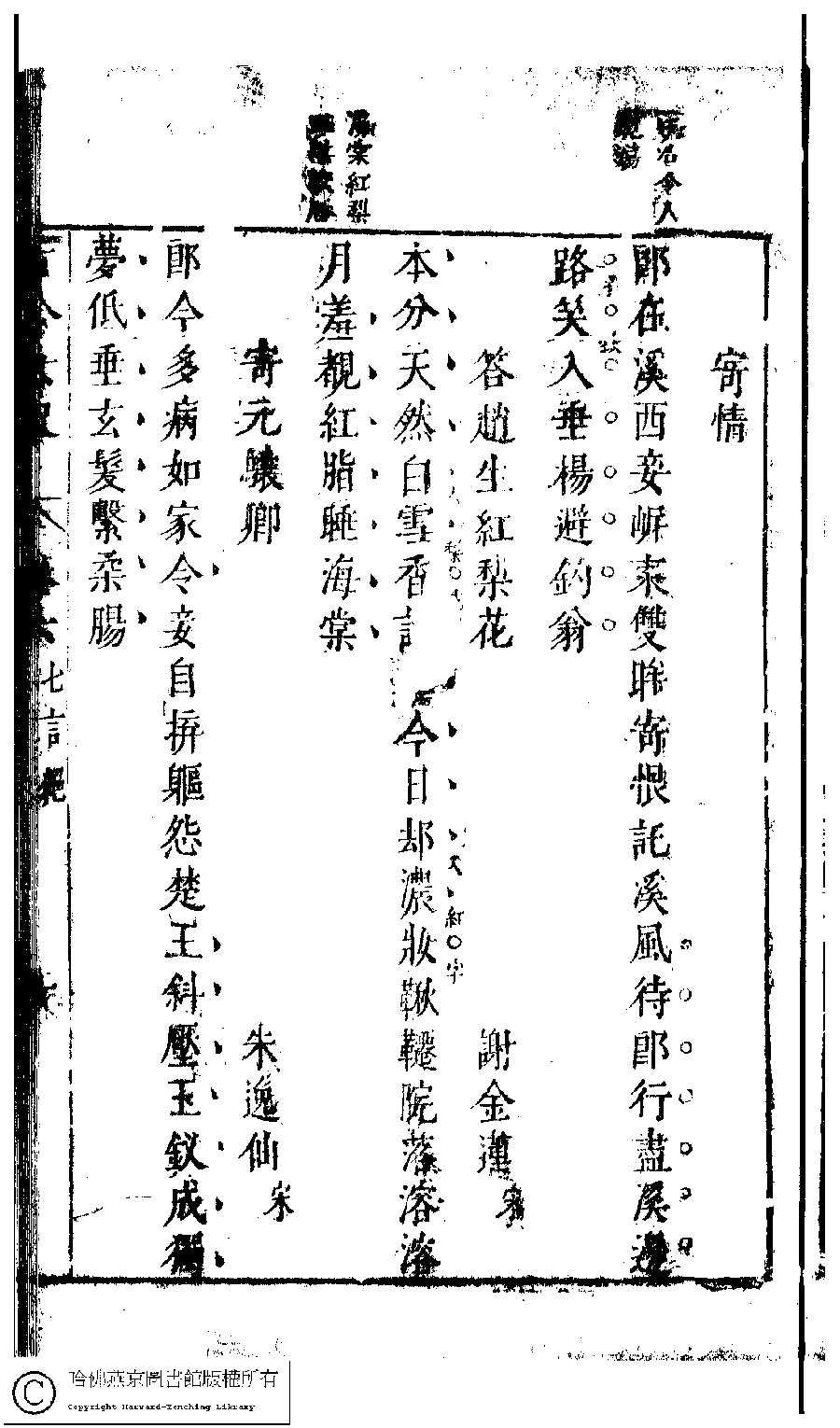 | (PRINT FRIENDLY VERSION) 古今女史﹕十二卷﹐詩集﹕八卷﹐附姓氏字里詳節﹕一卷(明趙世杰輯)。明崇禎(1628-1644)問奇閣刻本 ![]() 頁碼 : 6.10a | 点 击 放 大 | 返回 |