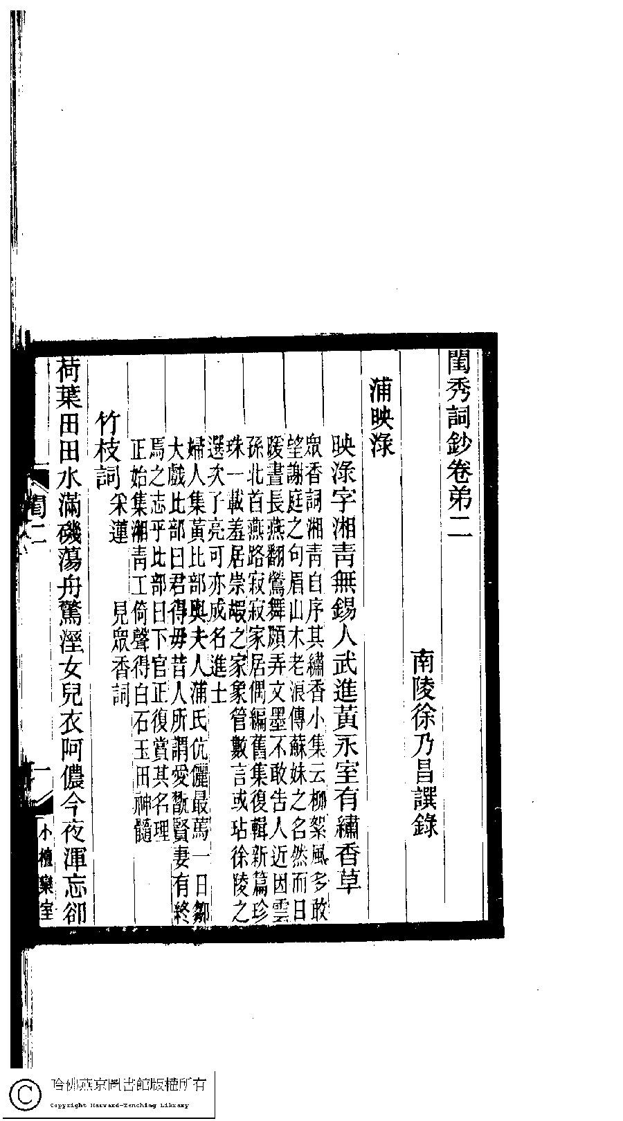 | 原書: 閨秀詞鈔﹕十六卷(清徐乃昌輯) |