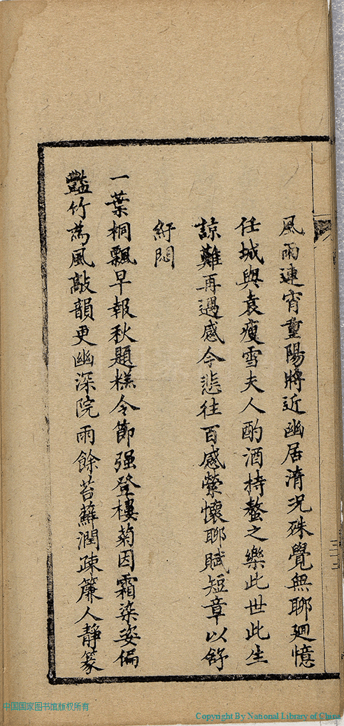 | (PRINT FRIENDLY VERSION) 燼餘詩稿:一卷(清徐清華撰)。清同治十三年(1874)刻本 ![]() 頁碼 : 詩稿.33a | 点 击 放 大 | 燼餘詩稿:一卷(清徐清華撰)。清同治十三年(1874)刻本![]() 頁碼 : 詩稿.32b | 点 击 放 大 | 返回 |