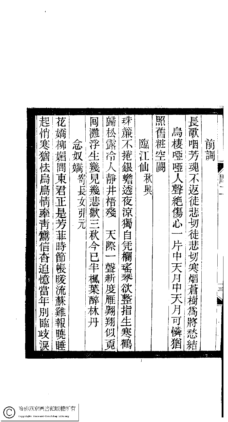| (PRINT FRIENDLY VERSION) 閨秀詞鈔﹕十六卷(清徐乃昌輯)。清宣統元年(1909)小檀欒室刻本。 ![]() 頁碼 : 2.13b | 点 击 放 大 | 返回 |