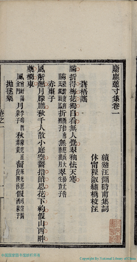| 原書: 麝塵蓮寸集:五卷(清汪淵撰; 程淑注) |