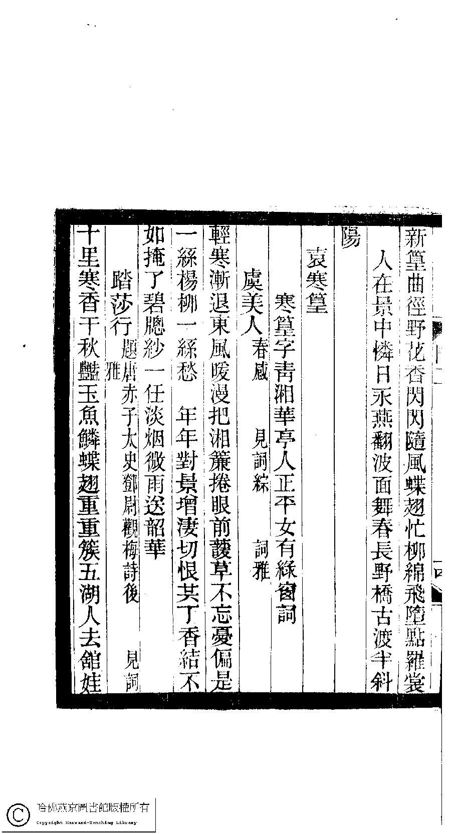 | (PRINT FRIENDLY VERSION) 閨秀詞鈔﹕十六卷(清徐乃昌輯)。清宣統元年(1909)小檀欒室刻本。 ![]() 頁碼 : 2.15a | 点 击 放 大 | 閨秀詞鈔﹕十六卷(清徐乃昌輯)。清宣統元年(1909)小檀欒室刻本。![]() 頁碼 : 2.14b | 点 击 放 大 | 返回 |