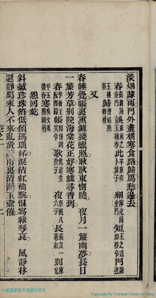 | (PRINT FRIENDLY VERSION) 麝塵蓮寸集:五卷(清汪淵撰; 程淑注)。清光緒十六年(1890)庚寅染翰齋刻本 ![]() 頁碼 : 1.2a | 点 击 放 大 | 返回 |