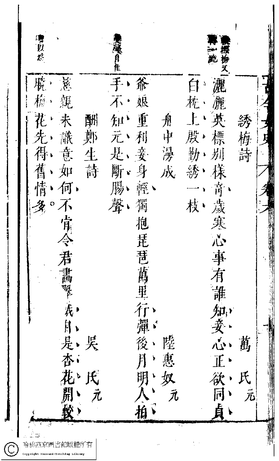 | 原書: 古今女史﹕十二卷﹐詩集﹕八卷﹐附姓氏字里詳節﹕一卷(明趙世杰輯) |