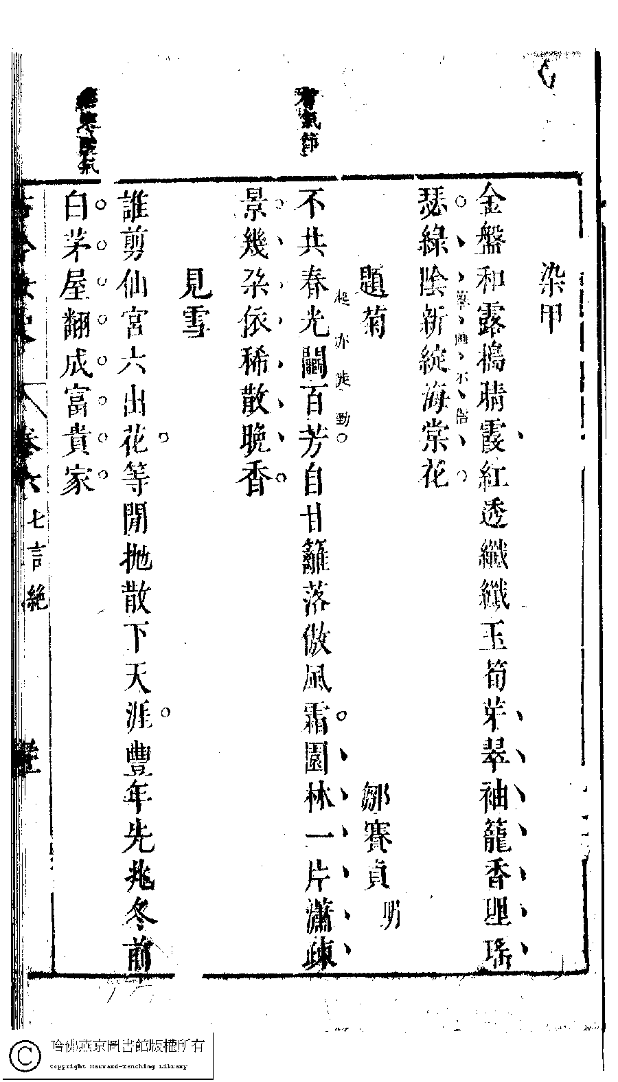 | (PRINT FRIENDLY VERSION) 古今女史﹕十二卷﹐詩集﹕八卷﹐附姓氏字里詳節﹕一卷(明趙世杰輯)。明崇禎(1628-1644)問奇閣刻本 ![]() 頁碼 : 6.21a | 点 击 放 大 | 返回 |