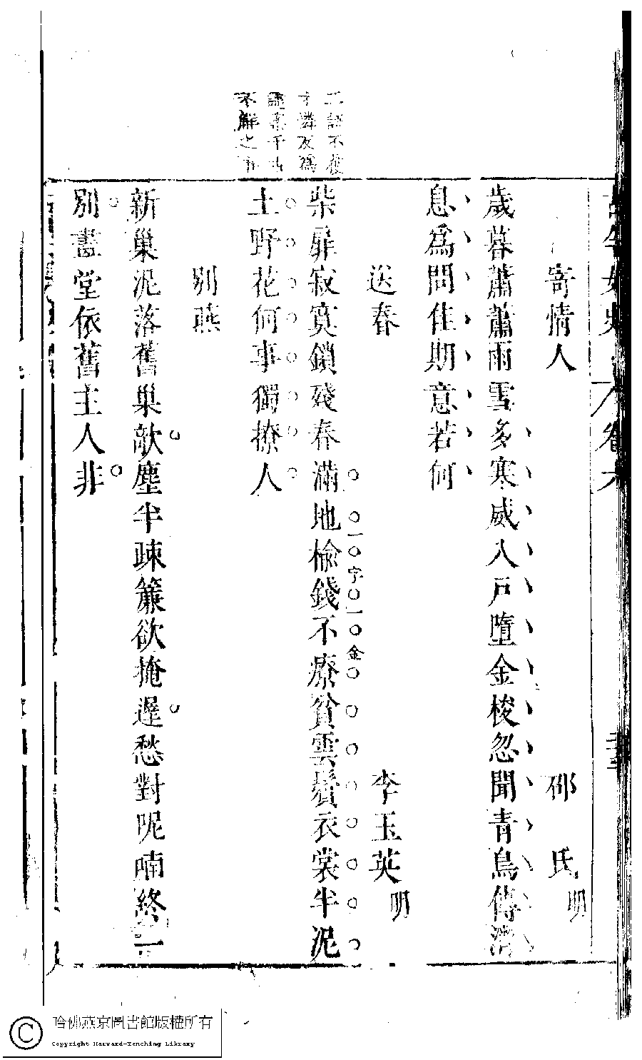 | (PRINT FRIENDLY VERSION) 古今女史﹕十二卷﹐詩集﹕八卷﹐附姓氏字里詳節﹕一卷(明趙世杰輯)。明崇禎(1628-1644)問奇閣刻本 ![]() 頁碼 : 6.23b | 点 击 放 大 | 返回 |