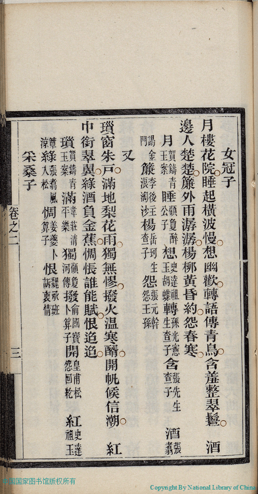 | (PRINT FRIENDLY VERSION) 麝塵蓮寸集:五卷(清汪淵撰; 程淑注)。清光緒十六年(1890)庚寅染翰齋刻本 ![]() 頁碼 : 2.3a | 点 击 放 大 | 返回 |