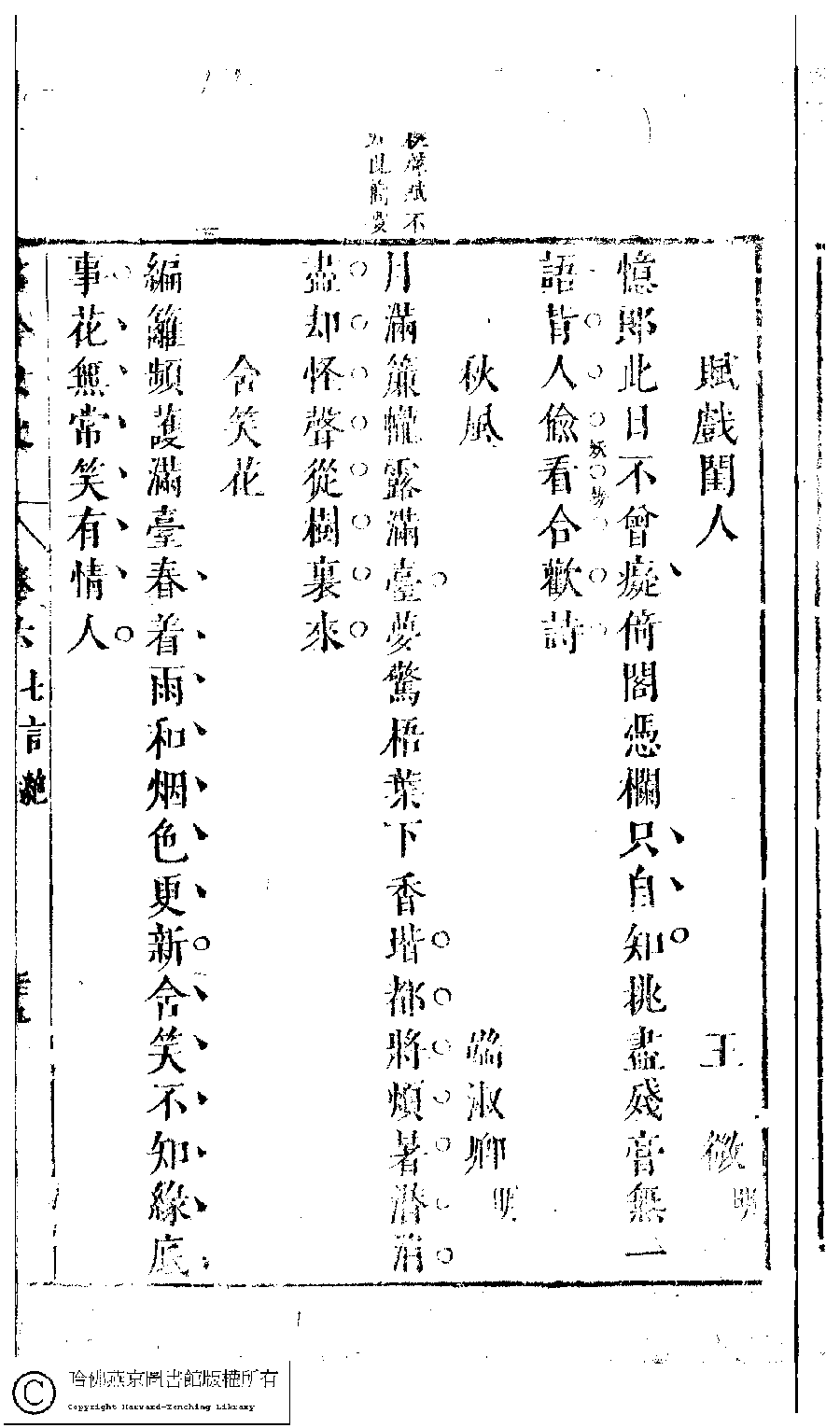 | (PRINT FRIENDLY VERSION) 古今女史﹕十二卷﹐詩集﹕八卷﹐附姓氏字里詳節﹕一卷(明趙世杰輯)。明崇禎(1628-1644)問奇閣刻本 ![]() 頁碼 : 6.29a | 点 击 放 大 | 返回 |