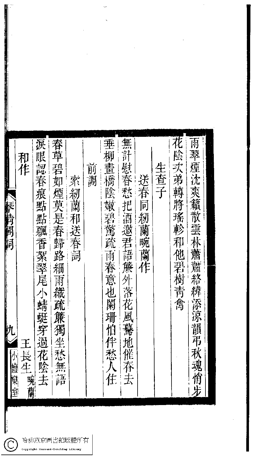 | 原書: 小檀欒室彙刻閨秀詞﹕十集一百種一百卷(清徐乃昌輯): 琴清閣詞﹕一卷 |