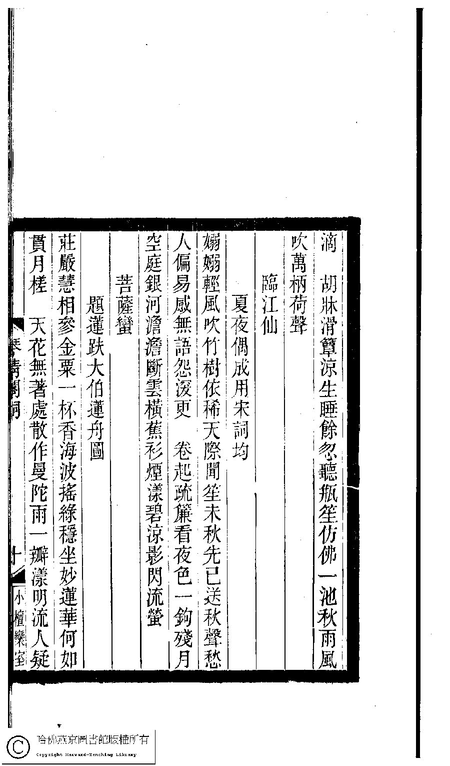 | (PRINT FRIENDLY VERSION) 小檀欒室彙刻閨秀詞﹕十集一百種一百卷(清徐乃昌輯)。清光緒二十二年(1896)南陵徐氏刻本。 ![]() 頁碼 : 琴清閣詞.10a | 点 击 放 大 | 返回 |
