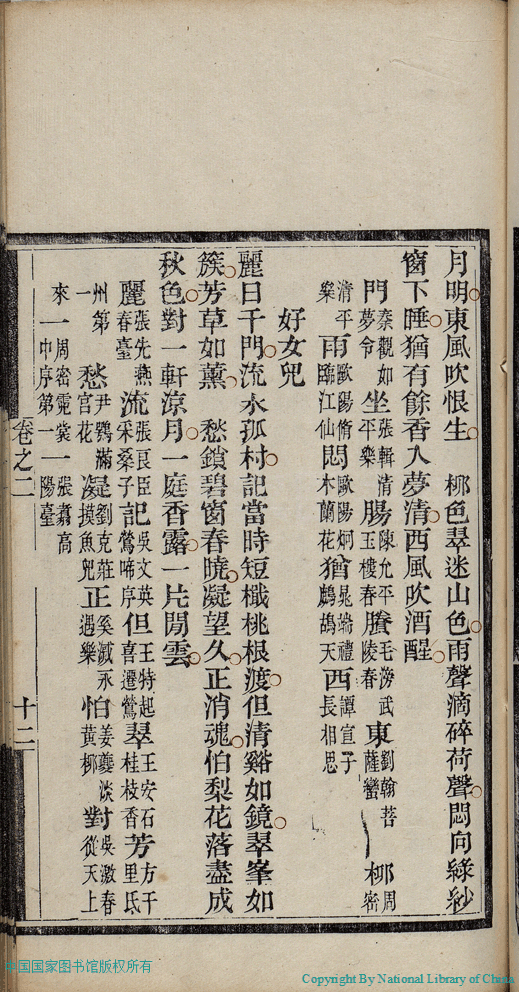 | (PRINT FRIENDLY VERSION) 麝塵蓮寸集:五卷(清汪淵撰; 程淑注)。清光緒十六年(1890)庚寅染翰齋刻本 ![]() 頁碼 : 2.12a | 点 击 放 大 | 返回 |