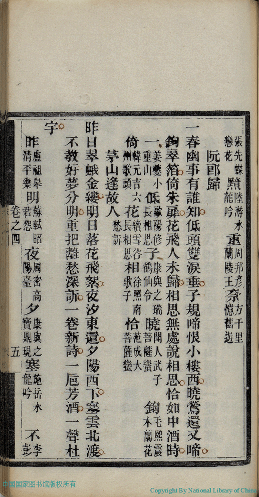 | (PRINT FRIENDLY VERSION) 麝塵蓮寸集:五卷(清汪淵撰; 程淑注)。清光緒十六年(1890)庚寅染翰齋刻本 ![]() 頁碼 : 4.5a | 点 击 放 大 | 返回 |