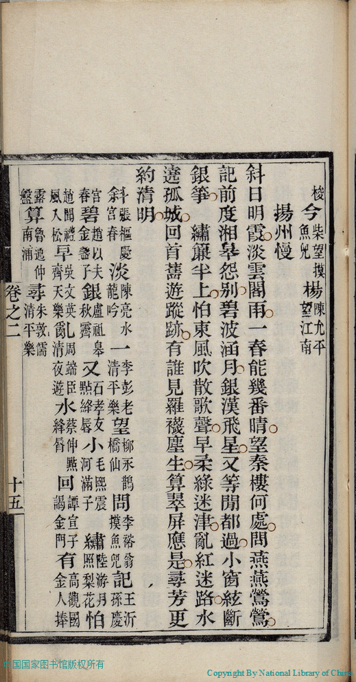 | (PRINT FRIENDLY VERSION) 麝塵蓮寸集:五卷(清汪淵撰; 程淑注)。清光緒十六年(1890)庚寅染翰齋刻本 ![]() 頁碼 : 2.15a | 点 击 放 大 | 返回 |