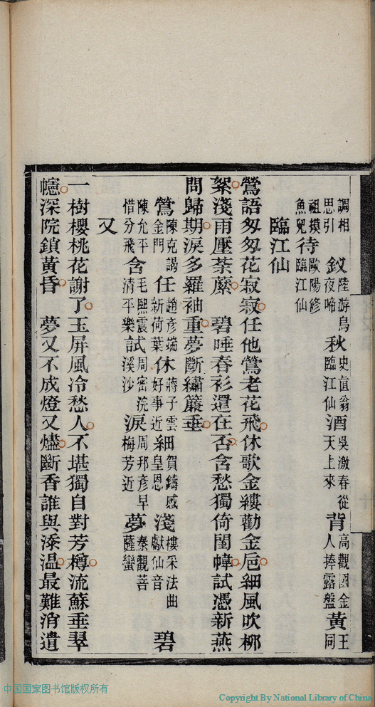 | (PRINT FRIENDLY VERSION) 麝塵蓮寸集:五卷(清汪淵撰; 程淑注)。清光緒十六年(1890)庚寅染翰齋刻本 ![]() 頁碼 : 4.10b | 点 击 放 大 | 返回 |