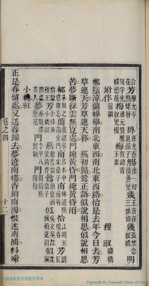 | (PRINT FRIENDLY VERSION) 麝塵蓮寸集:五卷(清汪淵撰; 程淑注)。清光緒十六年(1890)庚寅染翰齋刻本 ![]() 頁碼 : 4.12b | 点 击 放 大 | 麝塵蓮寸集:五卷(清汪淵撰; 程淑注)。清光緒十六年(1890)庚寅染翰齋刻本![]() 頁碼 : 4.12a | 点 击 放 大 | 返回 |