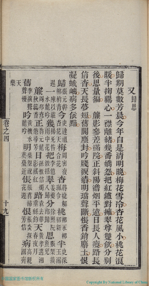 | (PRINT FRIENDLY VERSION) 麝塵蓮寸集:五卷(清汪淵撰; 程淑注)。清光緒十六年(1890)庚寅染翰齋刻本 ![]() 頁碼 : 4.19a | 点 击 放 大 | 返回 |