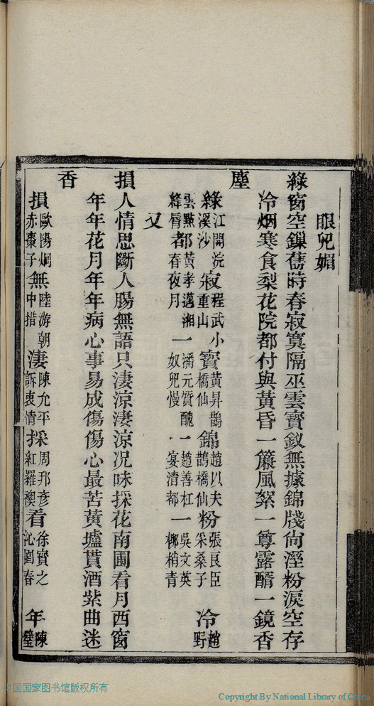 | (PRINT FRIENDLY VERSION) 麝塵蓮寸集:五卷(清汪淵撰; 程淑注)。清光緒十六年(1890)庚寅染翰齋刻本 ![]() 頁碼 : 3.6b | 点 击 放 大 | 返回 |