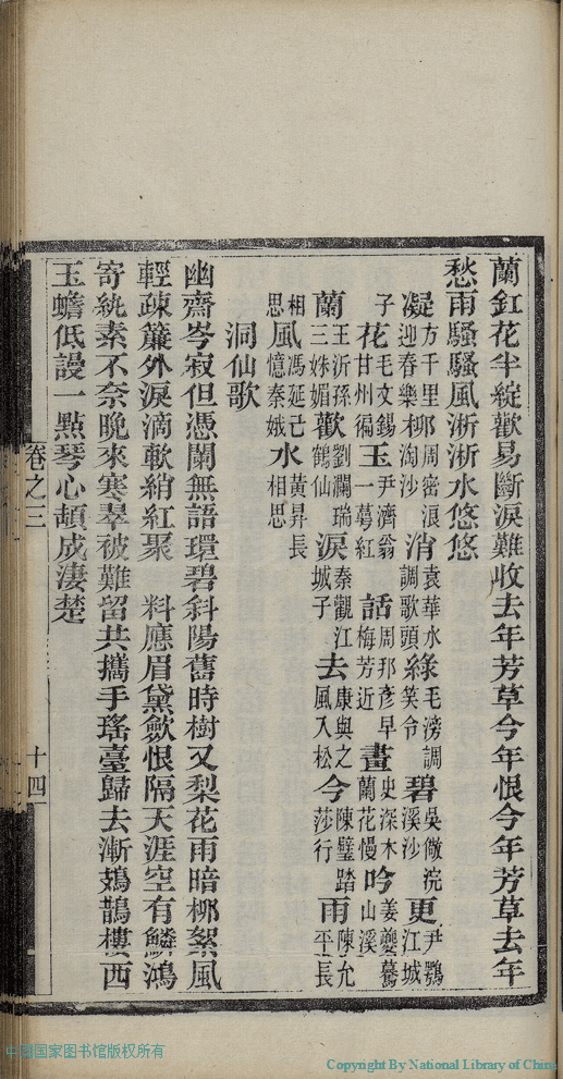 | (PRINT FRIENDLY VERSION) 麝塵蓮寸集:五卷(清汪淵撰; 程淑注)。清光緒十六年(1890)庚寅染翰齋刻本 ![]() 頁碼 : 3.14a | 点 击 放 大 | 返回 |