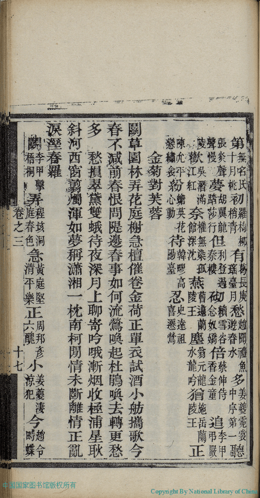 | (PRINT FRIENDLY VERSION) 麝塵蓮寸集:五卷(清汪淵撰; 程淑注)。清光緒十六年(1890)庚寅染翰齋刻本 ![]() 頁碼 : 3.17a | 点 击 放 大 | 返回 |