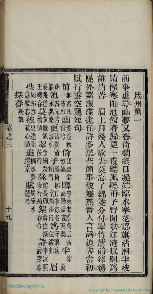 | (PRINT FRIENDLY VERSION) 麝塵蓮寸集:五卷(清汪淵撰; 程淑注)。清光緒十六年(1890)庚寅染翰齋刻本 ![]() 頁碼 : 3.19a | 点 击 放 大 | 返回 |