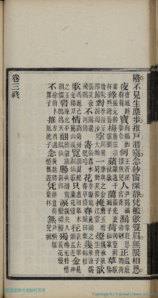 | (PRINT FRIENDLY VERSION) 麝塵蓮寸集:五卷(清汪淵撰; 程淑注)。清光緒十六年(1890)庚寅染翰齋刻本 ![]() 頁碼 : 3.22b | 点 击 放 大 | 返回 |