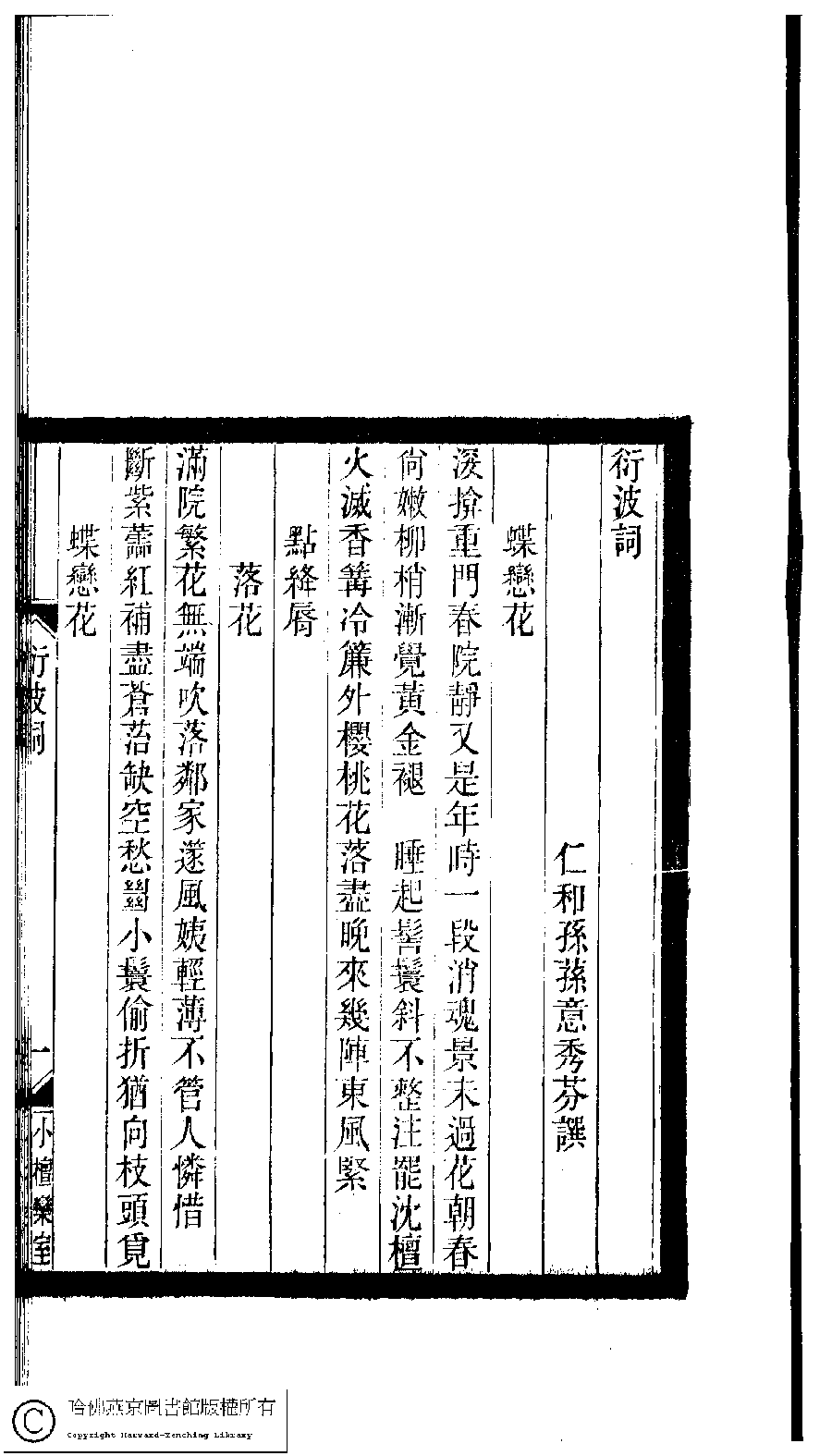 | 原書: 小檀欒室彙刻閨秀詞﹕十集一百種一百卷(清徐乃昌輯): 衍波詞﹕一卷 |