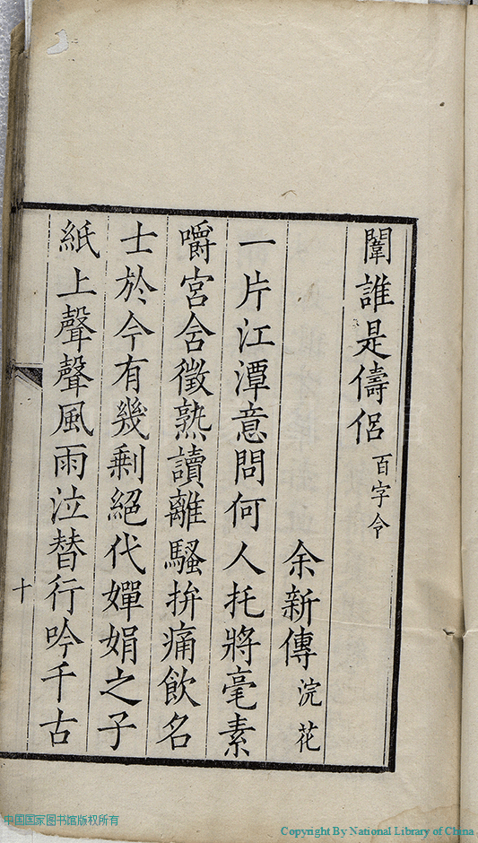 | (PRINT FRIENDLY VERSION) 喬影:一卷(清吳藻撰)。清(1820-1911)刻本 ![]() 頁碼 : 題辭.10a | 点 击 放 大 | 喬影:一卷(清吳藻撰)。清(1820-1911)刻本![]() 頁碼 : 題辭.9b | 点 击 放 大 | 喬影:一卷(清吳藻撰)。清(1820-1911)刻本![]() 頁碼 : 題辭.9a | 点 击 放 大 | 返回 |