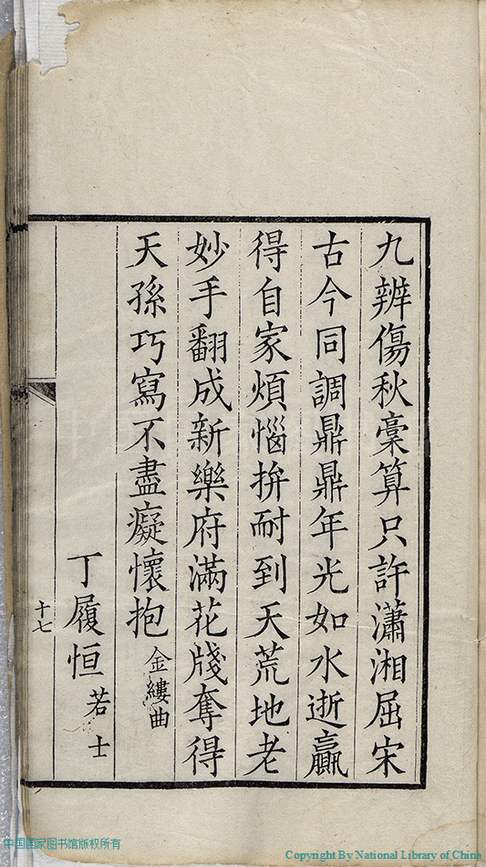 | (PRINT FRIENDLY VERSION) 喬影:一卷(清吳藻撰)。清(1820-1911)刻本 ![]() 頁碼 : 題辭.18a | 点 击 放 大 | 喬影:一卷(清吳藻撰)。清(1820-1911)刻本![]() 頁碼 : 題辭.17b | 点 击 放 大 | 喬影:一卷(清吳藻撰)。清(1820-1911)刻本![]() 頁碼 : 題辭.17a | 点 击 放 大 | 返回 |