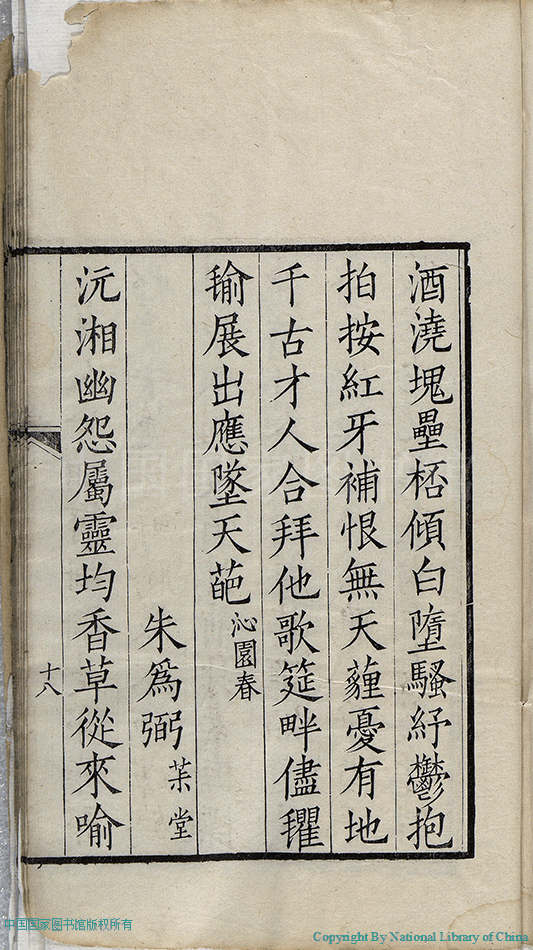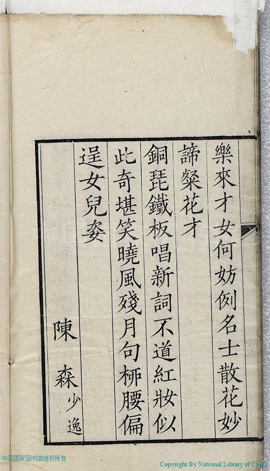 | (PRINT FRIENDLY VERSION) 喬影:一卷(清吳藻撰)。清(1820-1911)刻本 ![]() 頁碼 : 題辭.19b | 点 击 放 大 | 喬影:一卷(清吳藻撰)。清(1820-1911)刻本![]() 頁碼 : 題辭.19a | 点 击 放 大 | 喬影:一卷(清吳藻撰)。清(1820-1911)刻本![]() 頁碼 : 題辭.18b | 点 击 放 大 | 喬影:一卷(清吳藻撰)。清(1820-1911)刻本![]() 頁碼 : 題辭.18a | 点 击 放 大 | 返回 |