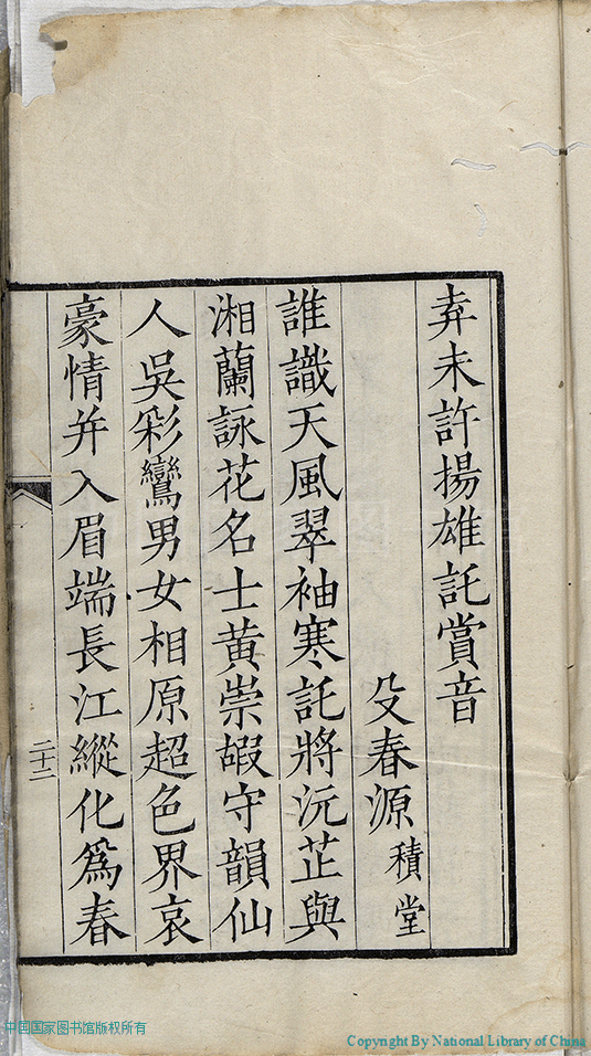 | (PRINT FRIENDLY VERSION) 喬影:一卷(清吳藻撰)。清(1820-1911)刻本 ![]() 頁碼 : 題辭.22b | 点 击 放 大 | 喬影:一卷(清吳藻撰)。清(1820-1911)刻本![]() 頁碼 : 題辭.22a | 点 击 放 大 | 返回 |