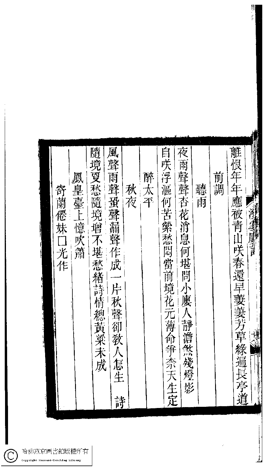 | 原書: 小檀欒室彙刻閨秀詞﹕十集一百種一百卷(清徐乃昌輯): 鴻雪樓詞﹕一卷 |