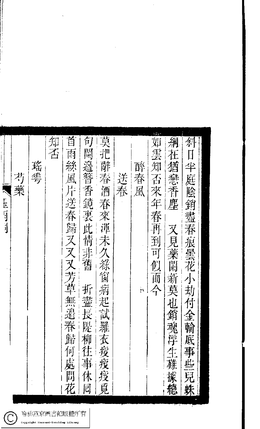 | 原書: 小檀欒室彙刻閨秀詞﹕十集一百種一百卷(清徐乃昌輯): 玉雨詞﹕一卷 |