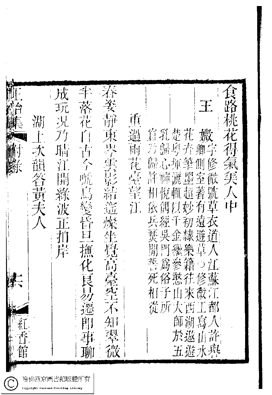 | 原書: 國朝閨秀正始集﹕二十卷﹐附錄﹕一卷﹐補遺﹕一卷﹐又附題詞﹕一卷(清惲珠輯) |