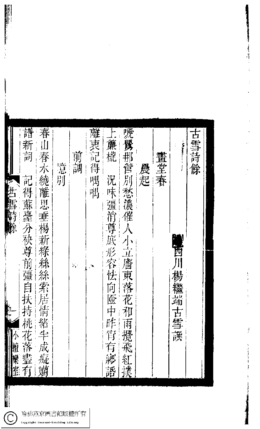 | 原書: 小檀欒室彙刻閨秀詞﹕十集一百種一百卷(清徐乃昌輯): 古雪詩餘﹕一卷 |