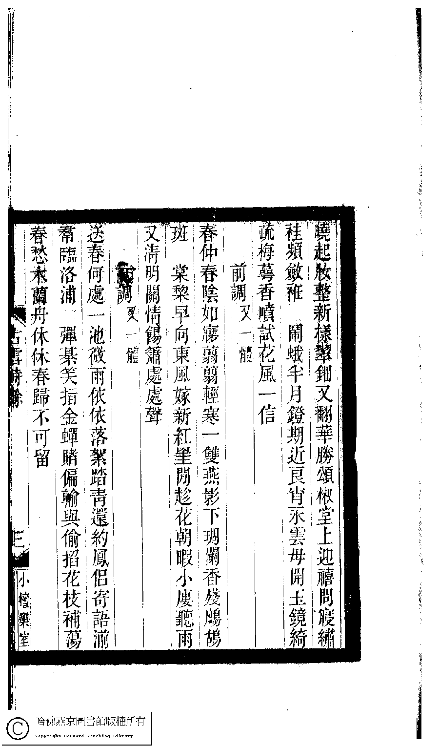 | 原書: 小檀欒室彙刻閨秀詞﹕十集一百種一百卷(清徐乃昌輯): 古雪詩餘﹕一卷 |