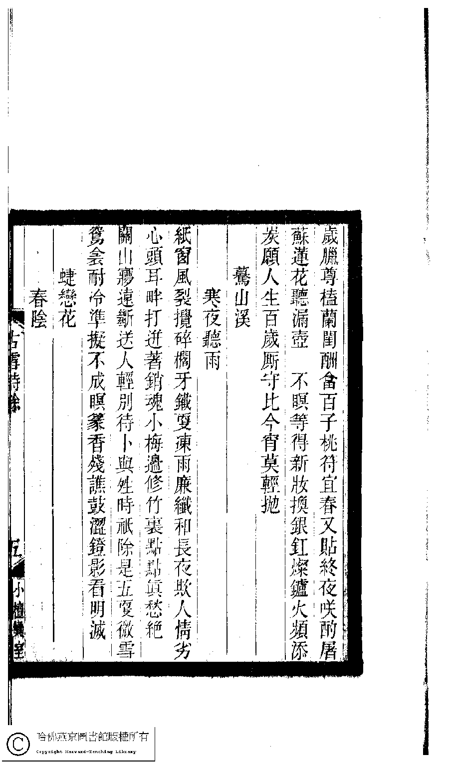 | 原書: 小檀欒室彙刻閨秀詞﹕十集一百種一百卷(清徐乃昌輯): 古雪詩餘﹕一卷 |