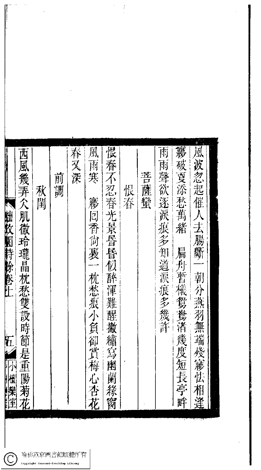 | 原書: 小檀欒室彙刻閨秀詞﹕十集一百種一百卷(清徐乃昌輯): 拙政園詩餘﹕三卷 |