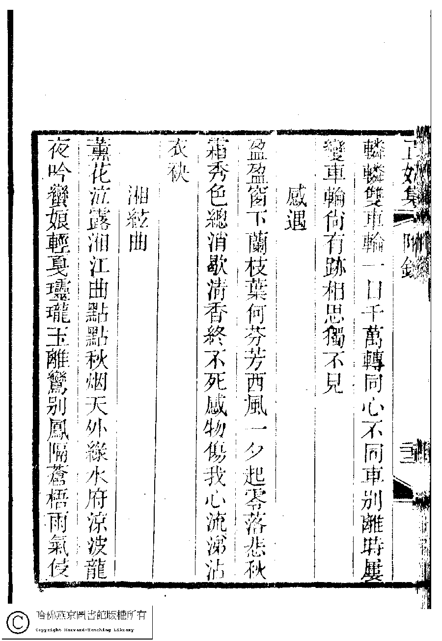 | 原書: 國朝閨秀正始集﹕二十卷﹐附錄﹕一卷﹐補遺﹕一卷﹐又附題詞﹕一卷(清惲珠輯) |