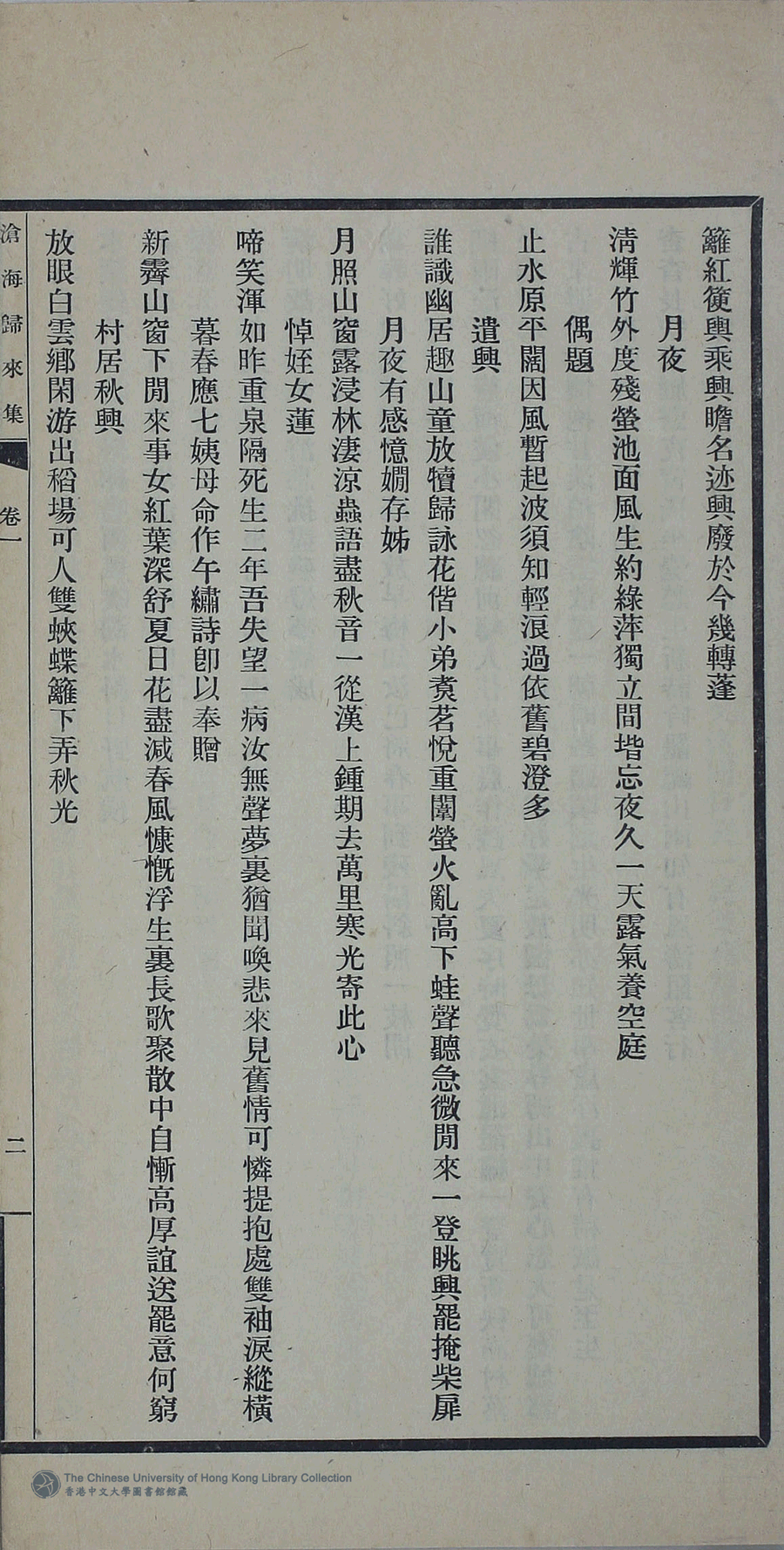 | 原書: 滄海歸來集:詩十一卷,詞一卷,續集一卷,餘卷二卷,消愁吟二卷,文一卷(清姚倚雲撰) |