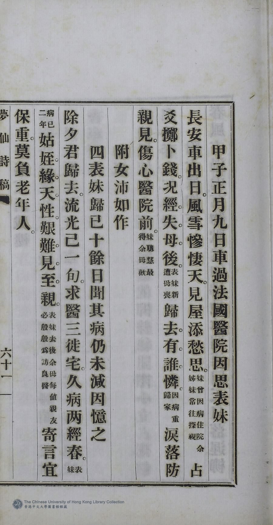詩詞 [附女沛如作甲子正月九日車過法國醫院因思表妹]