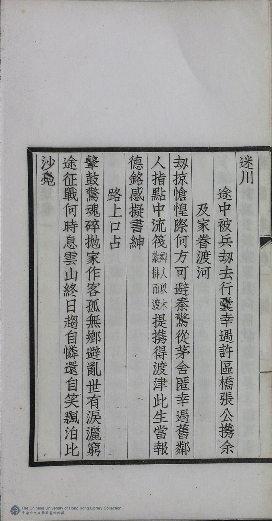 詩詞 [途中被兵劫去行囊幸遇許區橋張公攜余及家眷渡河]