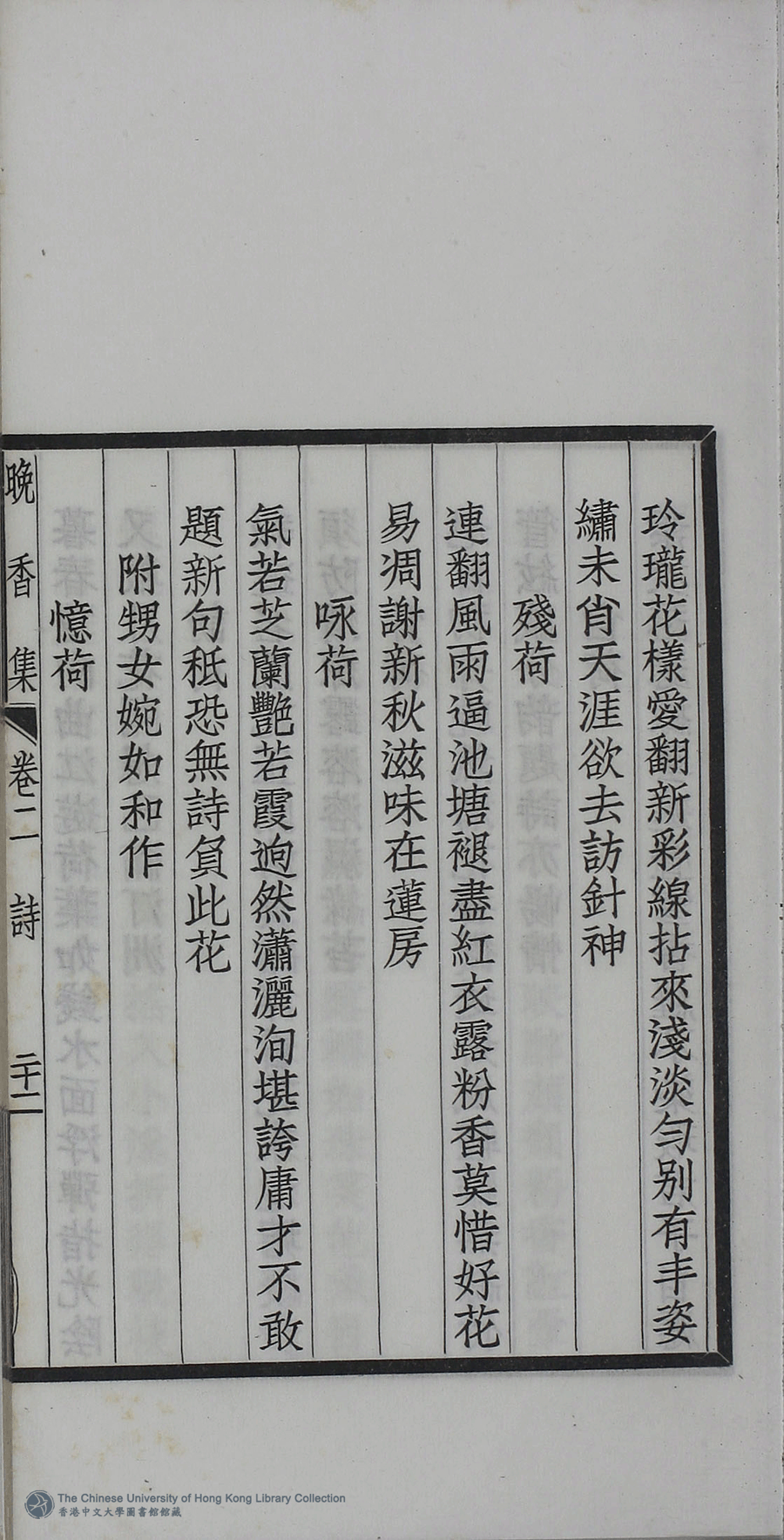 | 原書: 晚香集:詩三卷,詞一卷,歌一卷(清周曾镛, 王南城, 周韞玉撰) |
