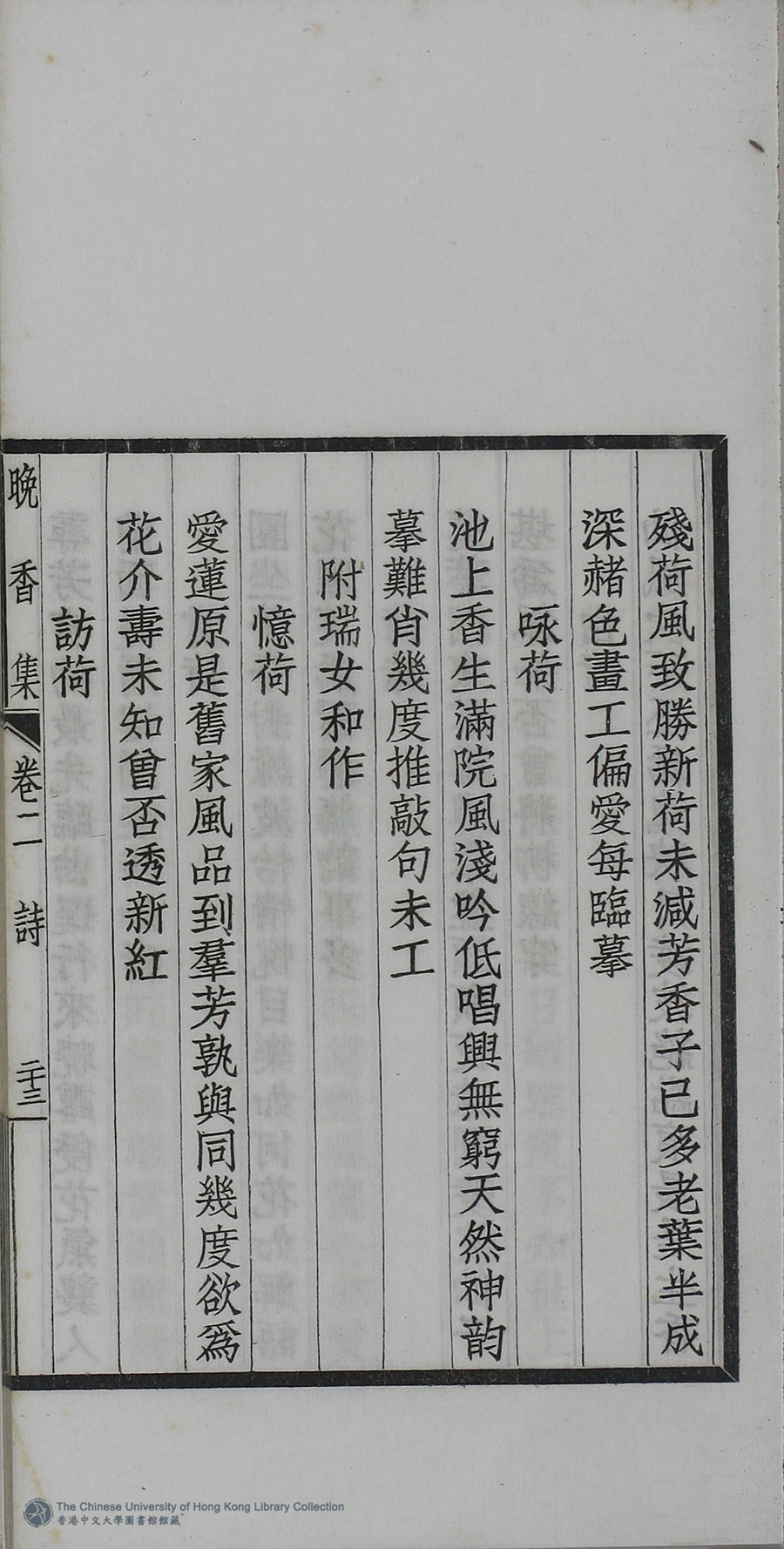 | 原書: 晚香集:詩三卷,詞一卷,歌一卷(清周曾镛, 王南城, 周韞玉撰) |