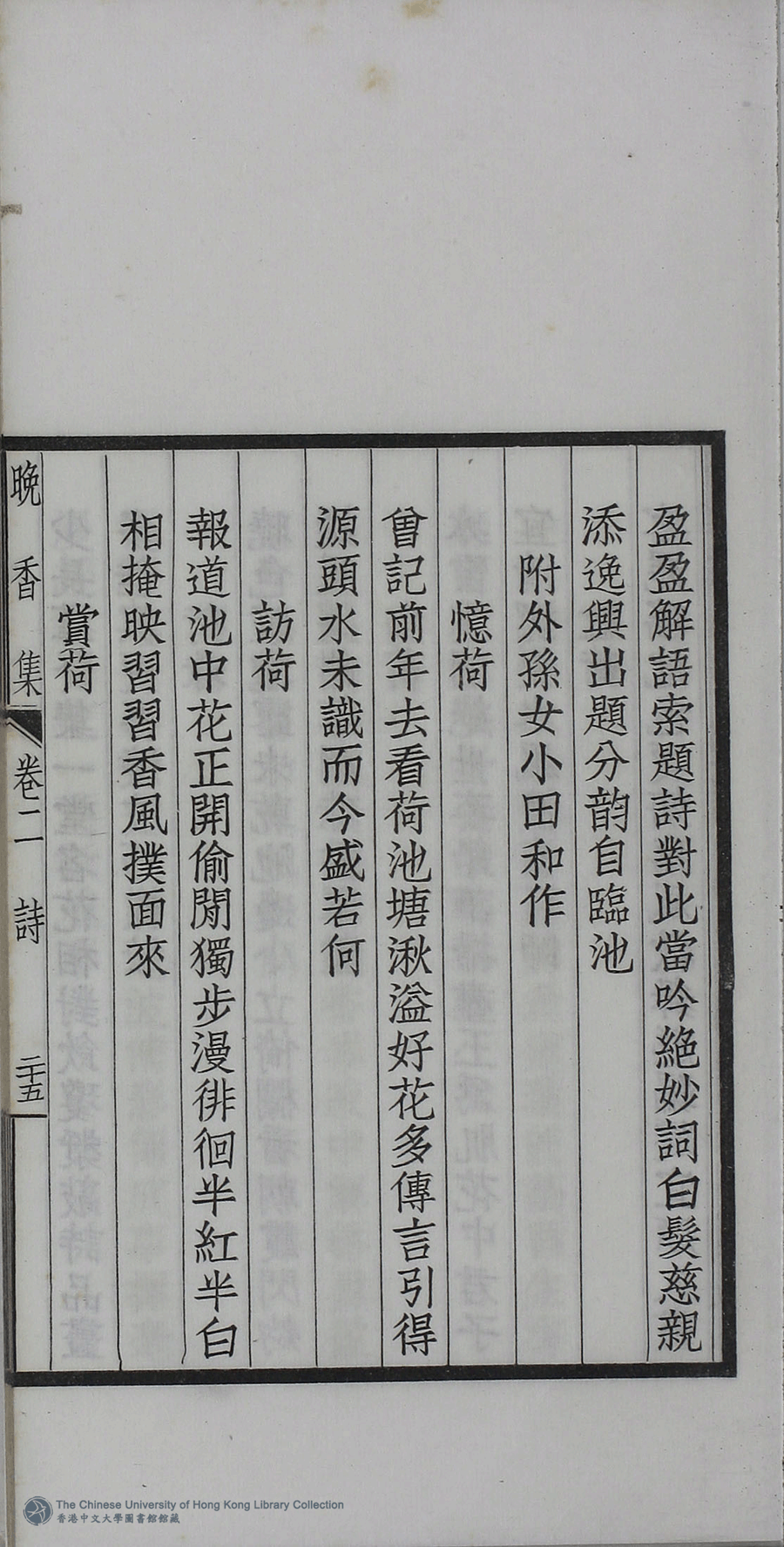 | 原書: 晚香集:詩三卷,詞一卷,歌一卷(清周曾镛, 王南城, 周韞玉撰) |