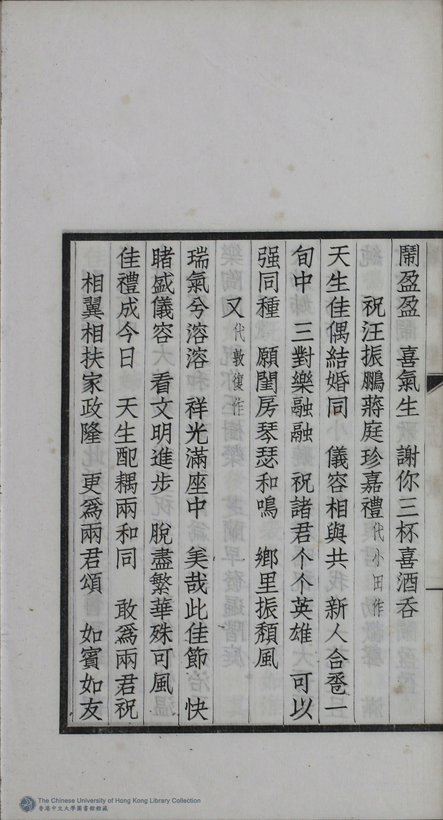 詩詞 [祝汪振鵬蔣庭珍嘉禮(代小田作) ]