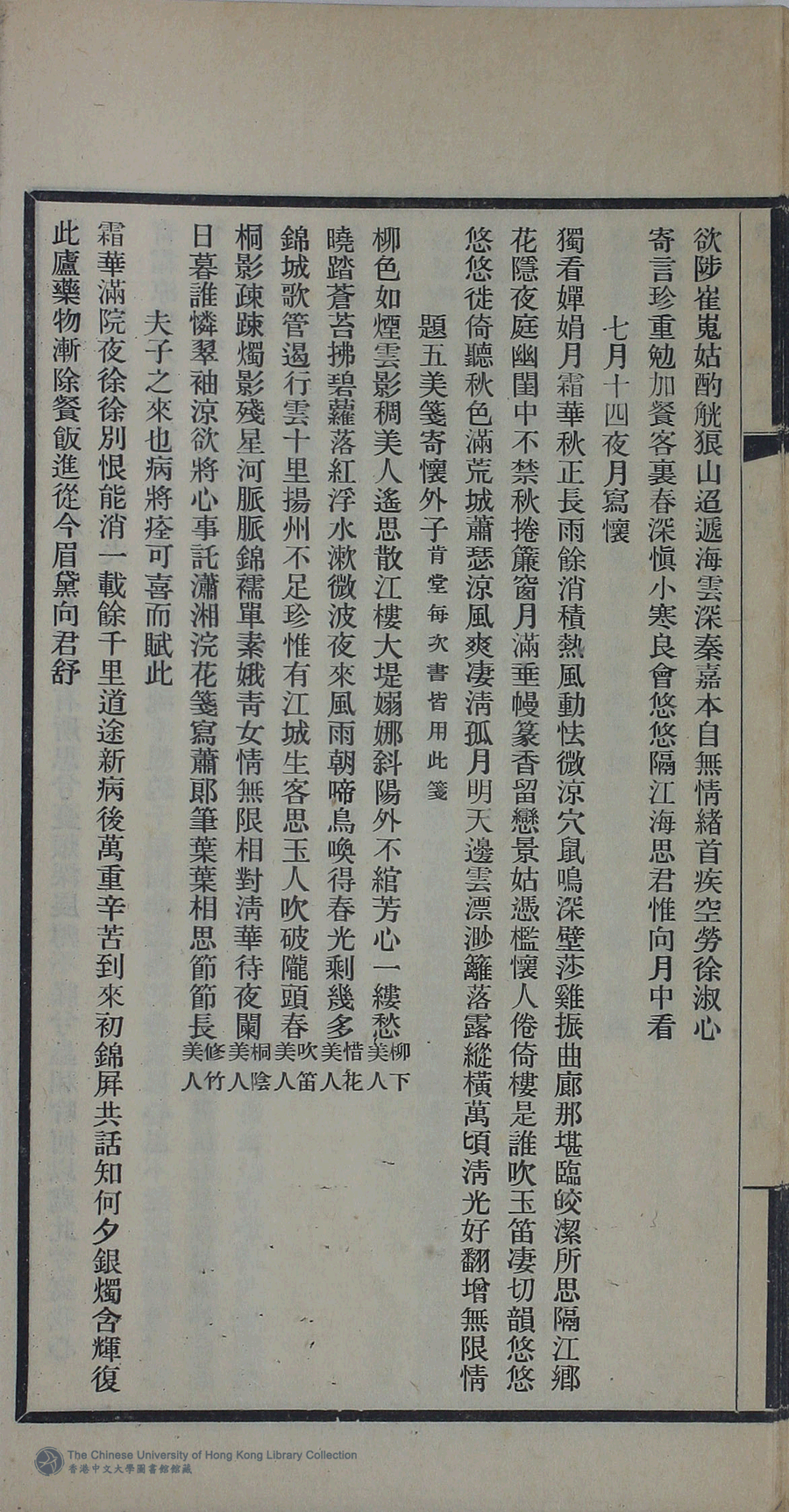| (PRINT FRIENDLY VERSION) 滄海歸來集:詩十一卷,詞一卷,續集一卷,餘卷二卷,消愁吟二卷,文一卷(清姚倚雲撰)。民國三十三年(1944)或其後排印本 ![]() 頁碼 : 詩3.9b | 点 击 放 大 | 返回 |