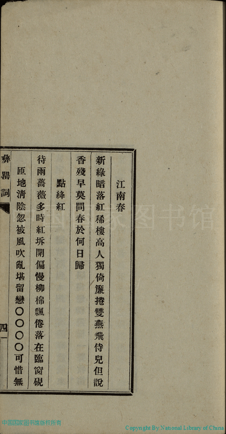 彝罌詞:一卷(清溫匋撰) 。民國鉛印本