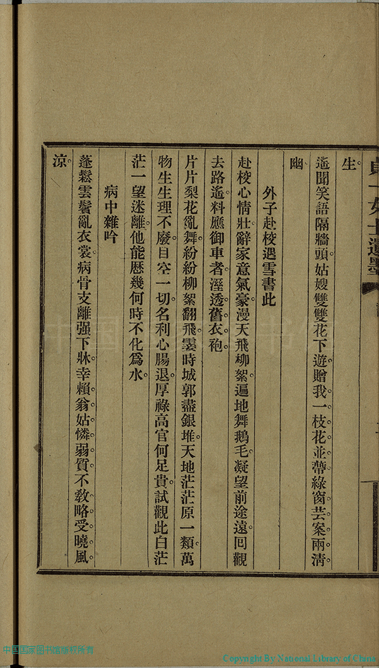 | (PRINT FRIENDLY VERSION) 貞一女士遺墨:一卷(清耿淑田撰) 。民國十一年(1922)國光書局鉛印本 ![]() 頁碼 : 詩.2b | 点 击 放 大 | 貞一女士遺墨:一卷(清耿淑田撰) 。民國十一年(1922)國光書局鉛印本![]() 頁碼 : 詩.2a | 点 击 放 大 | 返回 |